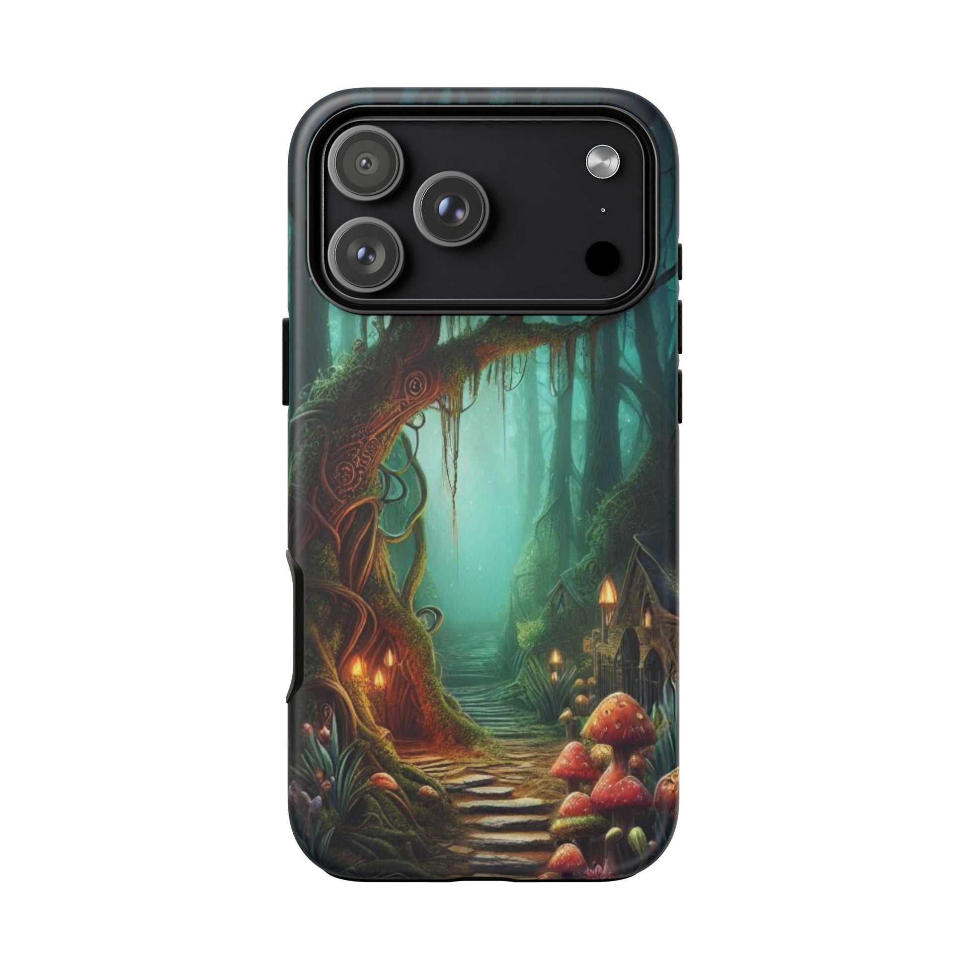 Phone Cases, Mystical Forest Design, Woodland Lanterns and Red Mushrooms, Tough Protective Cover, Gift for Nature Lovers, Unique Phone